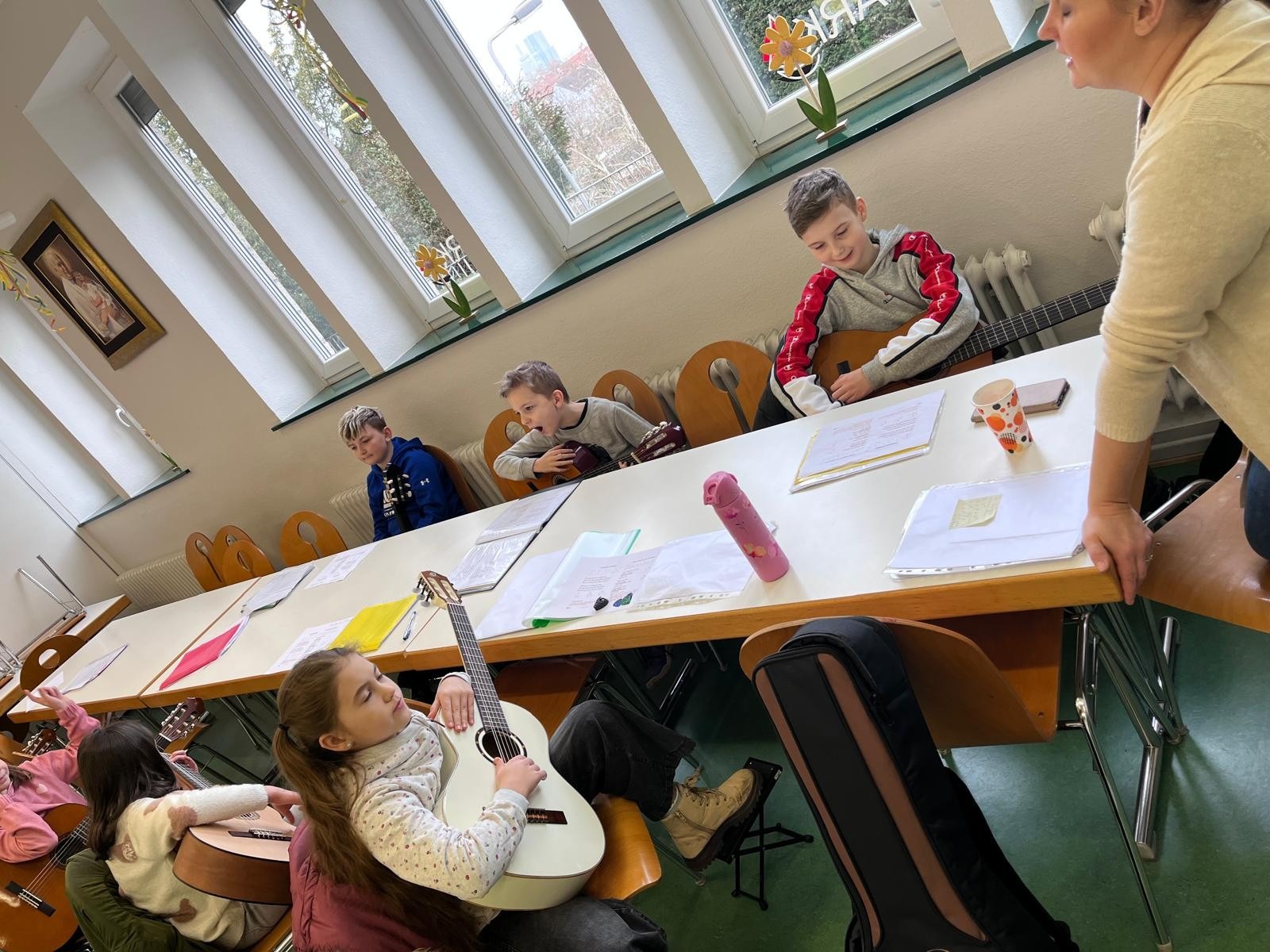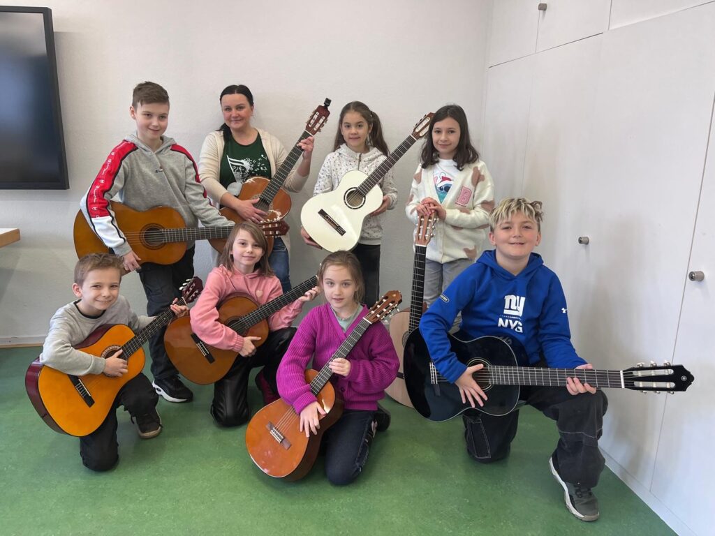 Za nami kolejna lekcja w grupie GitArka. Nasi młodzi i zdolni gitarzyści uczą się technik grania na gitarze: poznają nowe akordy oraz melodie. Słuchają uważnie i ćwiczą z ogromnym zaangażowaniem!